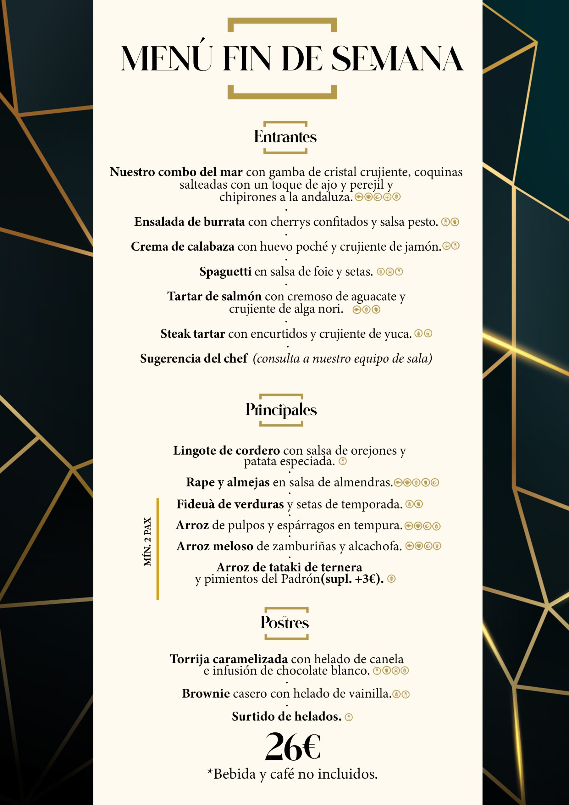 Disfruta además de nuestro menú semanal con el que disfrutarás de innovadoras propuestas al mejor precio. La cocina de Casablanca Cristal tiene el objetivo de transmitir pureza, sabor y sencillez y a la vez sorprender al comensal. ¿Te animas a probar?